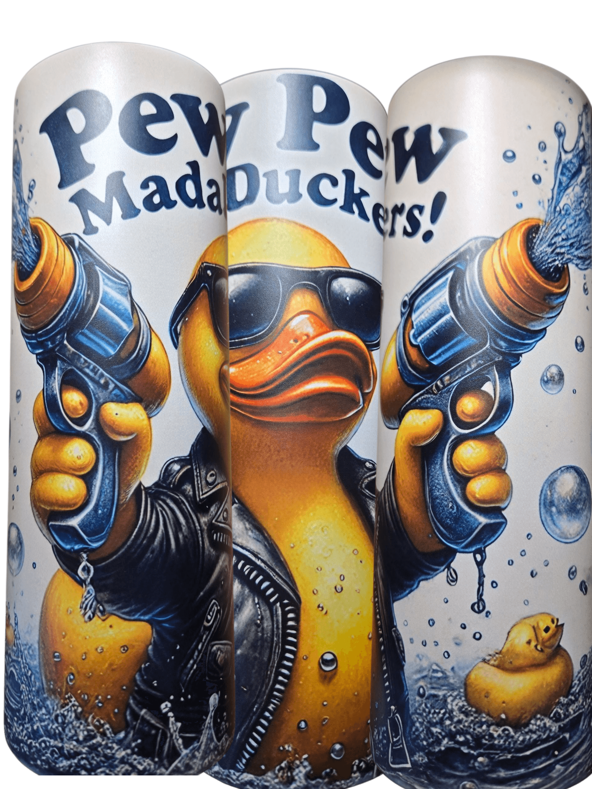 Elevate your hydration game with a tumbler that’s as tough and fun as you are. Order your Pew Pew Motha Duckers 20oz tumbler today and stay cool or cozy wherever life takes you.